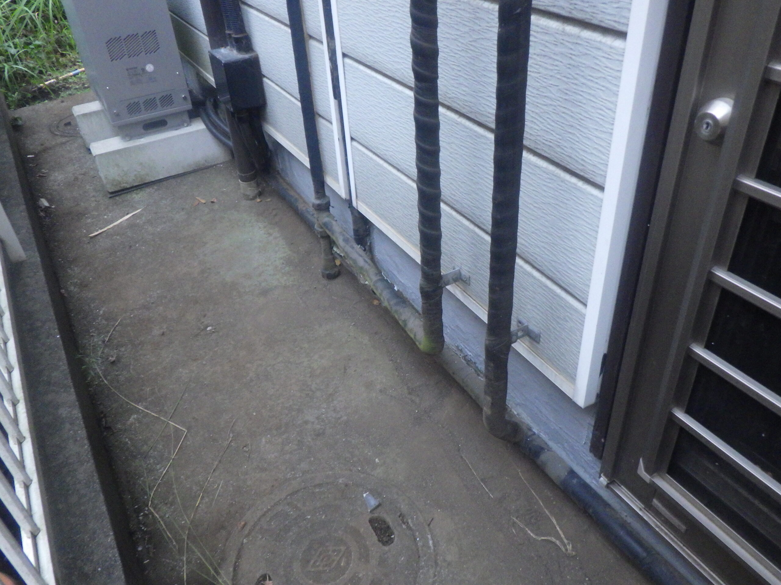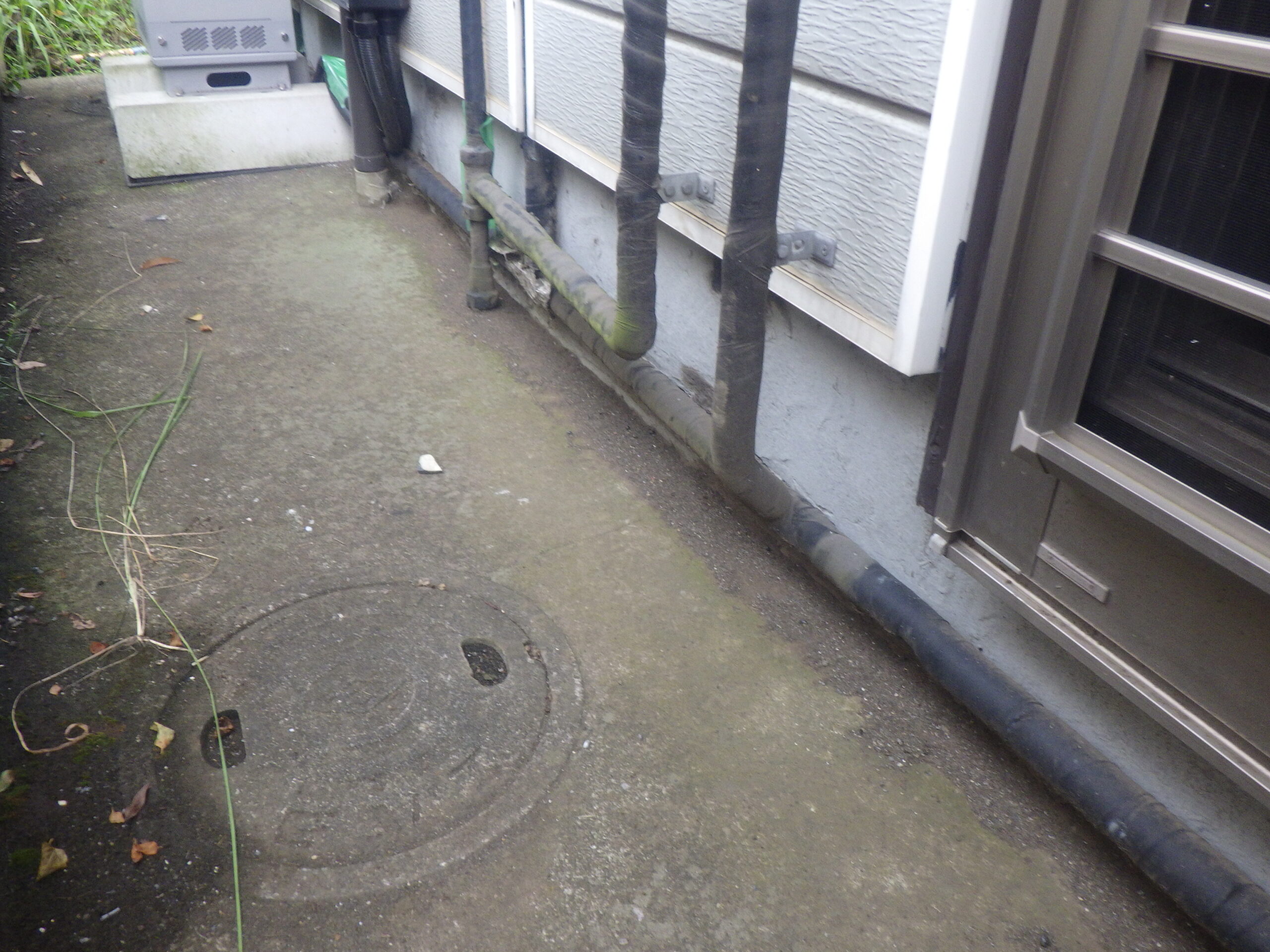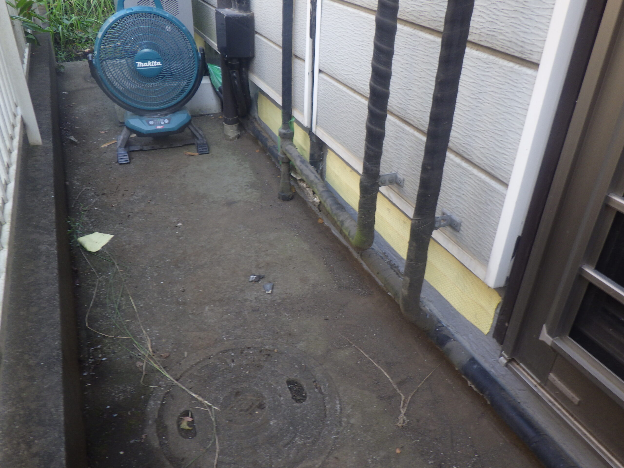神奈川県横浜市にて、戸建住宅の基礎補修・補強工事を行いました。外周部を確認したところ、基礎表面の劣化やひび割れが見られ、経年劣化による強度低下が懸念される状態でした。