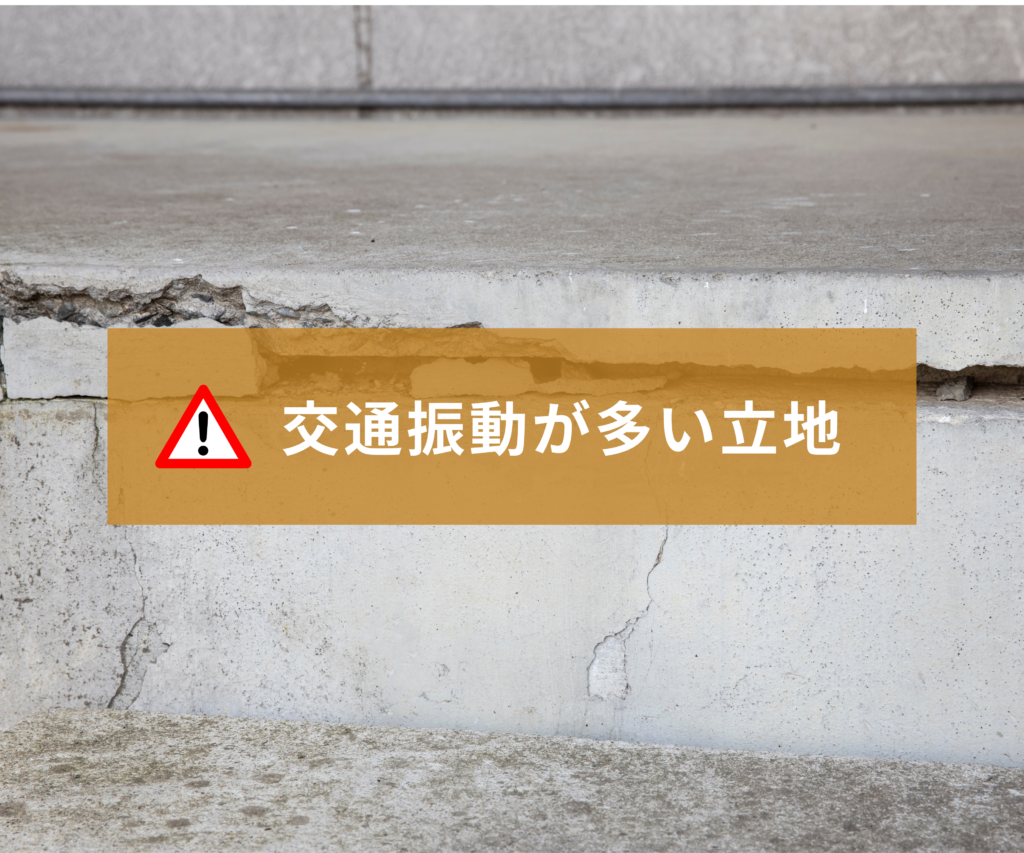 交通振動が日常的に加わる環境では、基礎に細かなクラックが発生しやすく、放置すると劣化が進行します。
